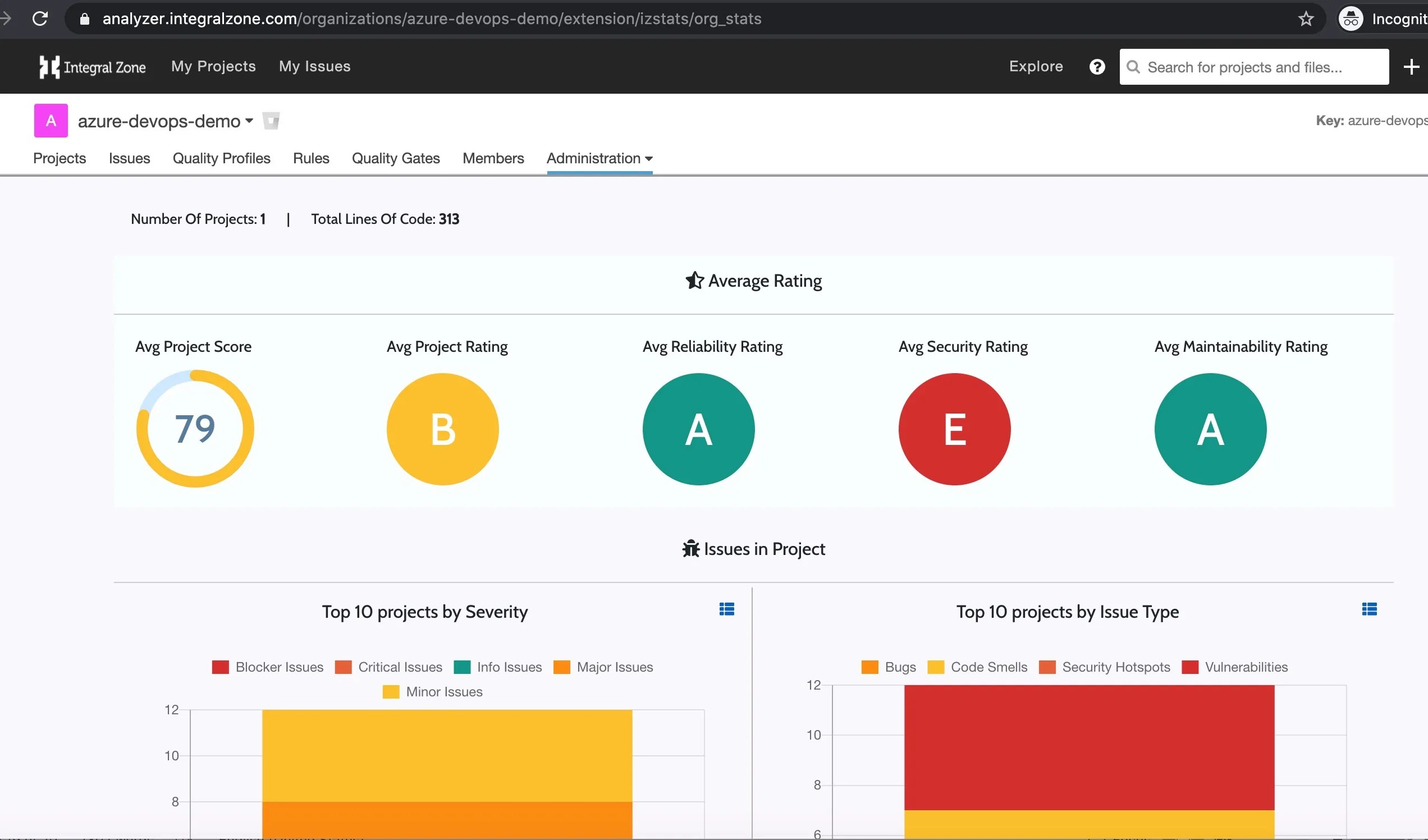 If you click the detailed SonarQube report option, it will take you the actual project analyzer page like below:
